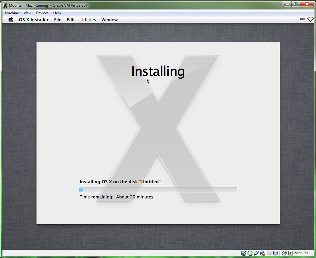Once that’s done with, Mac OSX will install itself. This will take at least 20 minutes.