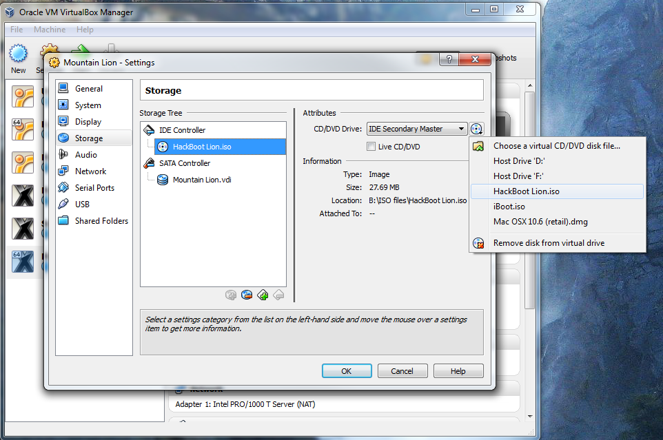 • Hackboot 1 / Hackboot 2: Even though it’s called a “bootable DVD”, the Olarila version of OS X Mountain Lion still can’t boot in Virtualbox by itself. To help Mountain Lion start, you’ll need to use Olarila’s Hackboot CD. There are three different versions of Hackboot; we’ll need to use two of them in this guide. “Hackboot 1” is for starting the Mountain Lion installer, while “Hackboot” 2 is for starting Mountain Lion itself.