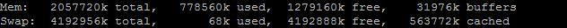 The fourth and fifth rows respectively indicate the use of physical memory (RAM) and swap. In this order: Total memory in use, free, buffers cached.