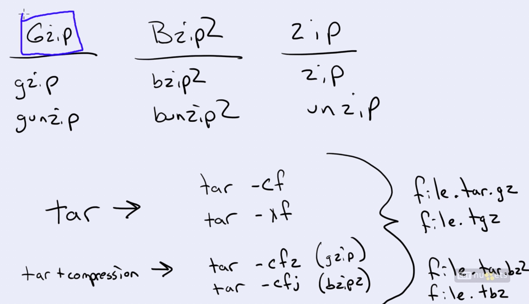 gzip and gunzip are GNU file compression and decompression utilities. Usually, files that have been compressed by gzip will have a .gz extension. However, sometimes you may see a file that has a .tgz extension. This is a TAR file that has been compressed by gzip. The .tgz extension is a shorthand version for the .tar.gz extension. This type of file must be uncompressed with gunzip before it can be untarred. However, there is a way to use the tar command to uncompress the file and untar it at the same time. For more information, see the tar: Tape Archive Files guide.